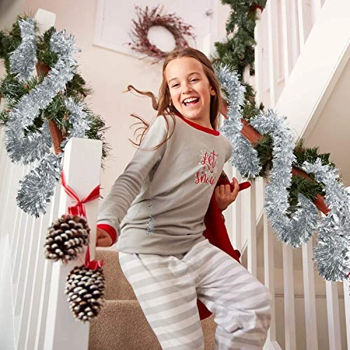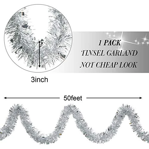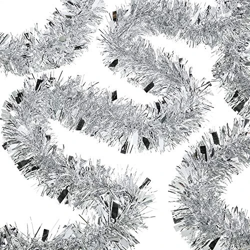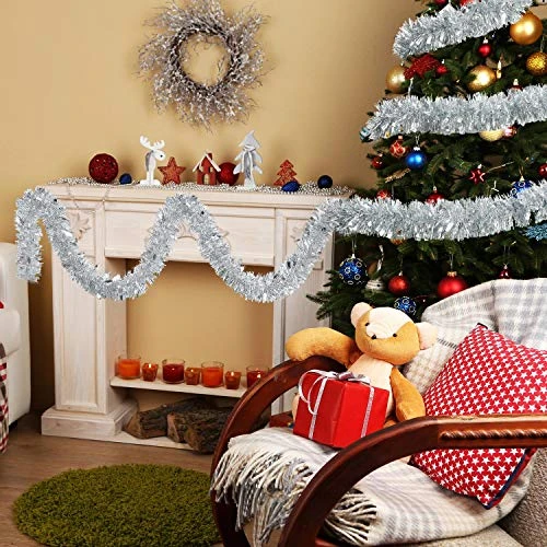 - Easy to shape: the soft wire inside the silver tinsel garland allows you to flexibly bend it to any shape you want, for example, wrapping it around a Christmas tree or cutting it to different pieces to make DIY crafts for your Christmas decorations