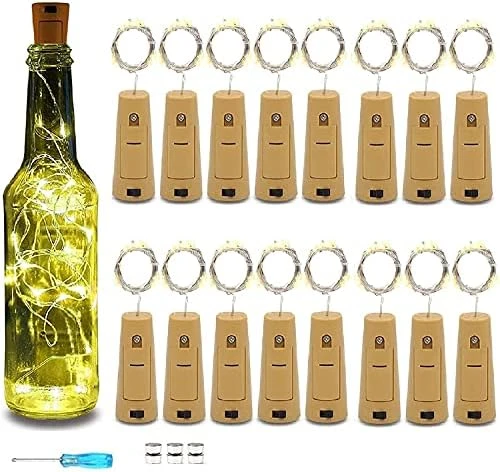 - 【Great Value(Includes Extra Mystery Giveaways)】This wine bottle lights with cork comes with 16 Pack 20 LEDS artificial cork lights, each cork lights with 3 PCS LR44 Batteries (Batteries included)&6 PCS Replacement Batteries(worth about $2)& Screwdriver. No Need to Power Socket and Convenient to Use.