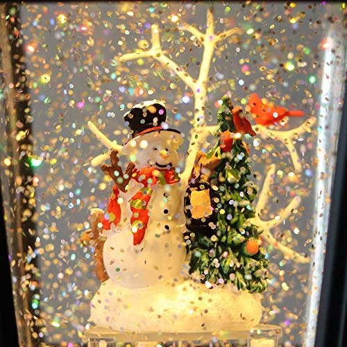 - ☃CHRISTMAS DESIGN: The sparkling snow dance trippingly when the light comes on. The snowman bathed in warm light with swirling glitter is so beautiful that creates a fantastic Christmas atmosphere. It will definitely be a highlight of your Christmas decorations, bring a lot of warmth and happiness to your family.